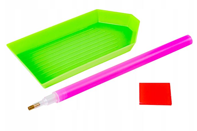 1 مجموعه از ابزارهای نقاشی الماسی (قلم، سینی، چسب، الماس ها)