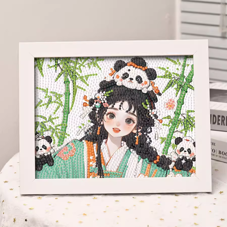 خانه تابلوی الماسی سایز 15 در 20 سانتی متری تابلو الماسی دختر و پاندا