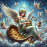 در افقهای دور دست آسمان، جایی که ابرها چون فرشهای نرم پهن شدهاند، بانویی با بالهای درخشان و تاجی از گل و نور، گنجینهای بیپایان از سکههای طلایی را در دستان خود دارد. این بانوی مهربان، نگهبان ثروت معنوی است که نه تنها ارزش مادی بلکه ارزشهای حقیقی زندگی را نمایان میسازد.