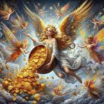 در آسمانهای دوردست، جایی که ستارگان همیشه میدرخشند و مهربانی حکمفرماست، فرشتهای مهربان با بالهای طلایی و تاجی درخشان، جامی پر از سکههای طلای مقدس را در دست دارد. این سکهها نمادی از بخشندگی، امید و برکتاند. او با لبخندی آرام، سکهها را به سوی فرشتگان کوچکتر اطرافش میریزد. این فرشتگان، حاملان پیامهای عشق و وفورند، هرکدام با بالهایی رنگین و نورانی، به سمت زمین میروند تا زندگیها را روشن کنند.