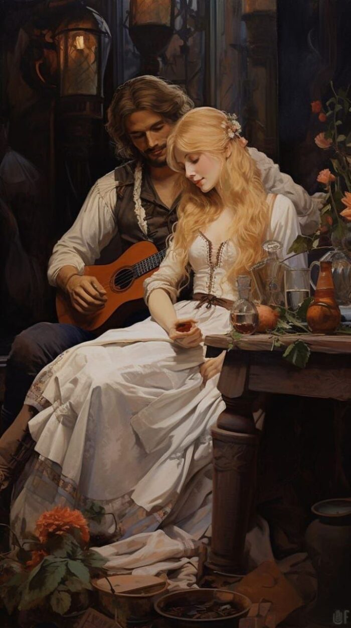 در دل شبهای تاریک و پرستاره، مردی با موهای پریشان و چشمانی پر از حسرت، بر روی صندلی چوبی قدیمی نشسته بود و با نواختن گیتارش، زخمهای دلش را به جهان میگفت. کنار او، دختری با موهای طلایی و لباسی سفید، آرام و مغموم، دستش را بر روی دسته میز گذاشته بود، گویی که با هر نت موسیقی درونش را به آرامش میرساند.