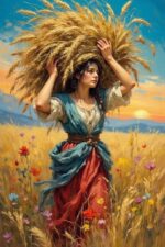 در روزی از روزهای پایان تابستان، هنگام برداشت، لیا دستهای از خوشههای گندم را بر سر گذاشت و از میان گلهای رنگارنگ عبور کرد. او احساس میکرد که زمین با او حرف میزند، گویی هر گل و هر ساقه گندم قصهای برای گفتن دارد. گلهای وحشی کنار پایش میرقصیدند، و آسمان با رنگهای گرم غروب او را بدرقه میکرد.
