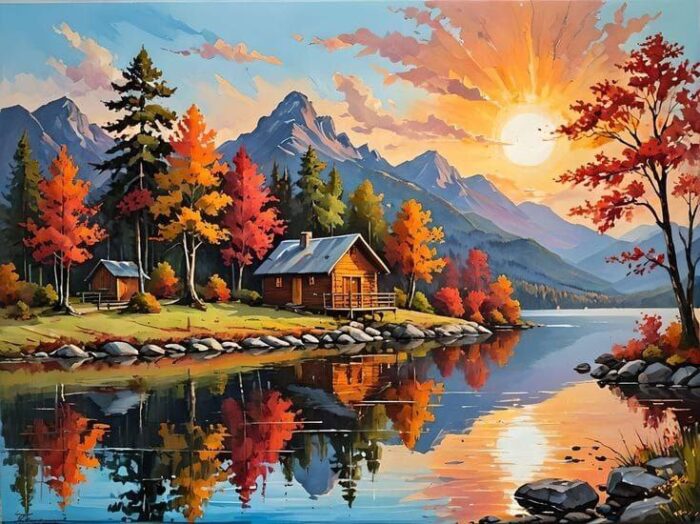 در دل کوههای بلند و سر به فلک کشیده، کلبهی چوبی کوچکی بود که در کنار دریاچهای آرام قرار داشت. این کلبه پناهگاهی برای روحهای خسته بود؛ جایی که میتوانستند در آرامش پاییزی، رنگهای گرم برگها و انعکاس آفتاب را در آب تماشا کنند. هر غروب، خورشید با اشعههای طلاییاش، نه تنها آسمان را روشن میکرد بلکه دلها را نیز نورانی میساخت. درختان رنگارنگ، مانند نقاشیای زنده، داستان گذر زمان و زیبایی تغییر را روایت میکردند.