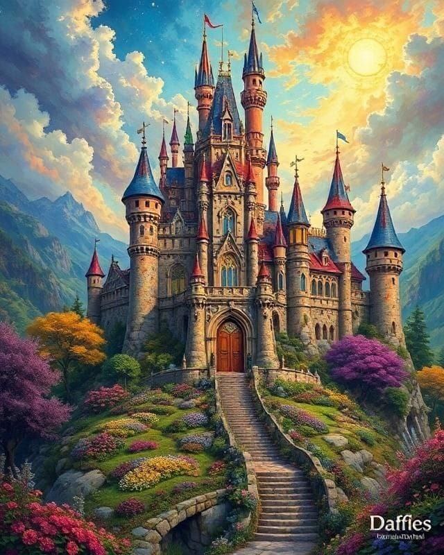 در قلعهای بلند که بر فراز تپهای پوشیده از گلهای رنگارنگ ایستاده بود، خورشید همیشه در آسمان میدرخشید و ابرهای رنگی اطراف آن میرقصیدند. پلههای سنگی از دروازهی چوبی به باغهای پرشکوه میرسیدند، جایی که رازهای نهفته در دل زمین منتظر کشف شدن بودند.
