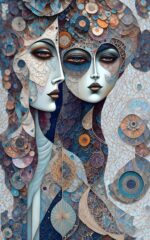 در سرزمینی دور، جایی میان خواب و بیداری، دو خواهر زندگی می‌کردند؛ لیرا و نومی. آن‌ها از گوهرهایی ساخته شده بودند که زمان را در خود می‌چرخاند. پوست‌شان از نخ‌های ظریف نور و سایه تنیده شده بود، و چشمان‌شان درون چرخ‌دنده‌هایی می‌چرخید که گذشته و آینده را همزمان می‌دید.