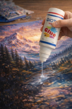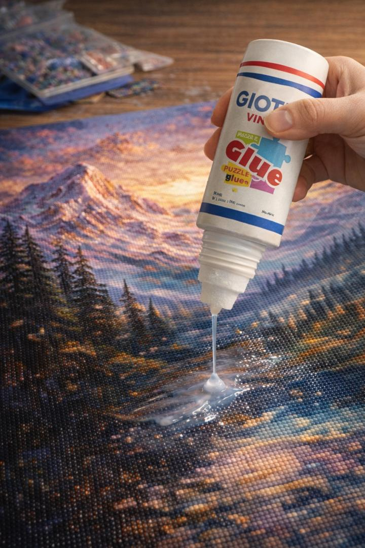 این چسب یک پوشش نهایی ایدهآل برای نقاشی الماسی است که بعد از اتمام کار استفاده میشود. رنگ چسب در ابتدا سفید است اما پس از خشک شدن کاملاً بیرنگ میشود و هیچ اثری روی طرح باقی نمیگذارد.